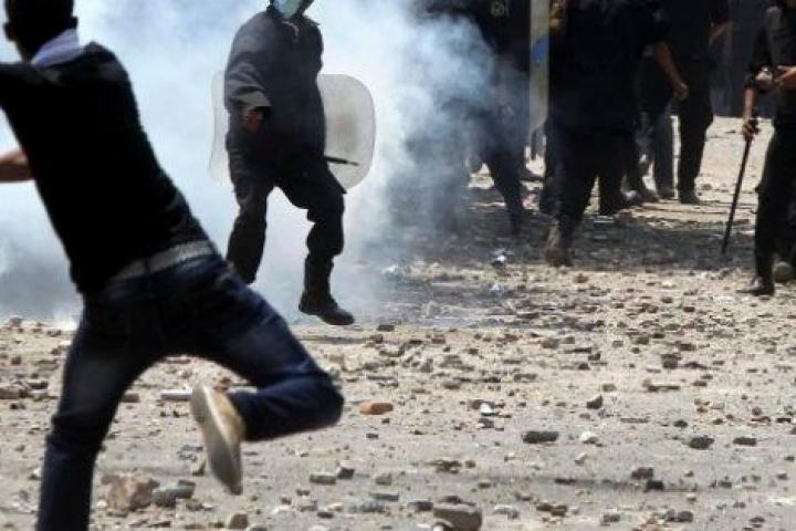 Decenas de jóvenes lanzaron piedras contra las fuerzas del orden, que respondieron con gases lacrimógenos. En las imágenes se puede ver como la policía también arroja piedras a los manifestantes.