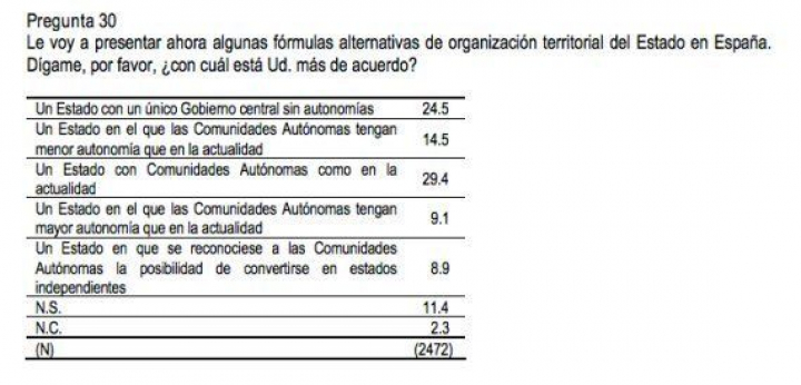 Según la encuesta, el 29,4% de los españoles se muestra a favor de un Estado con Comunidades Autónomas, como en la actualidad.