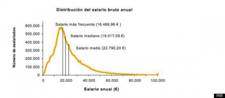 Los datos definitivos publicados por el Instituto Nacional de Estadística (INE) correspondientes a 2010 sitúan el salario bruto medio anual en 22.790,20 euros, Las mujeres cobraron de media 6.000 euros menos que los hombres, que percibieron una media de 25.479,74 euros. El número de mujeres que ganaron menos de 14.000 euros fue mayor