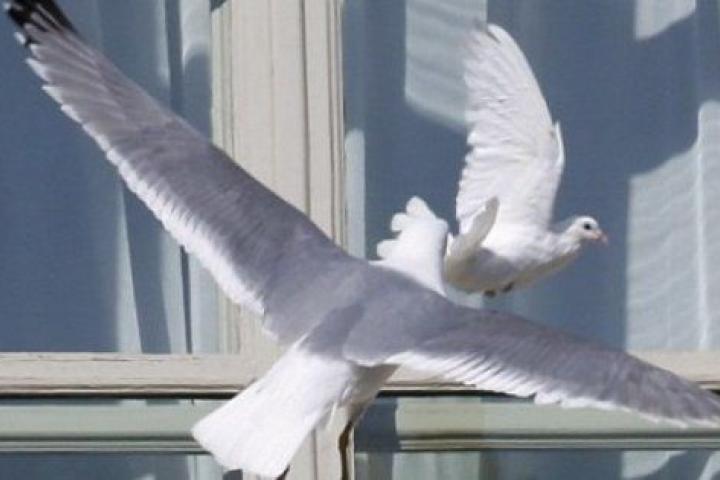 Segundos después de que Benedicto XVI soltara a la paloma desde la tradicional ventana del Vaticano, una gaviota se lanzó en picado y la atacó con su pico hasta estamparla contra uno de los ventanales. La paloma no cesó en su lucha por escapar entre los pórticos y los pilares centenarios.