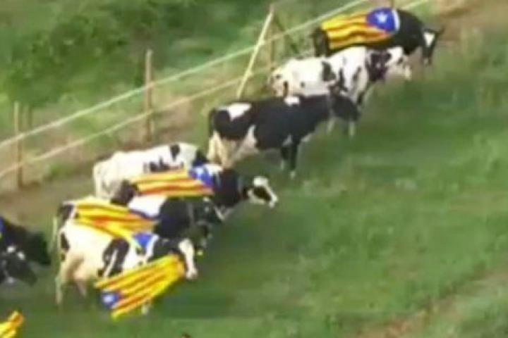 Mientras la actriz Marina Comas leía un discurso, TV3 emitía imágenes de vacas con banderas independentistas. Mmmuuuuy oportunas.