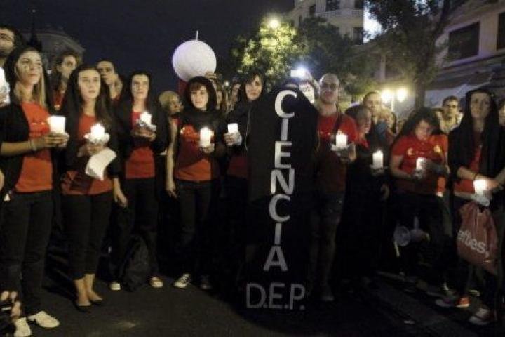 Centenares de personas protestaron en Madrid este viernes en contra los recortes en investigación, más de un 45 % desde 2009, en la noche de la "Noche de los Investigadores", una iniciativa para acercar la ciencia a los ciudadanos y que este año celebra su novena edición.