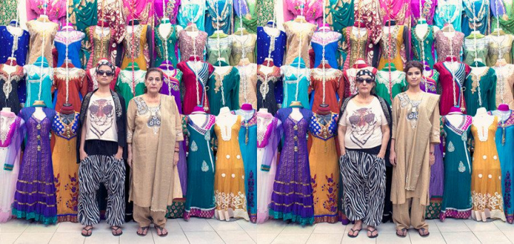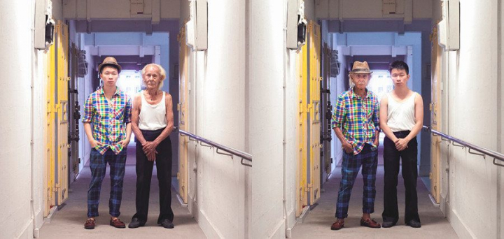 Qozop ha situado ante su objetivo a parejas formadas por dos miembros de la misma familia de generaciones distintas que se intercambian la ropa, de forma que al primer vistazo no es tan fácil apreciar cuál es el más joven.