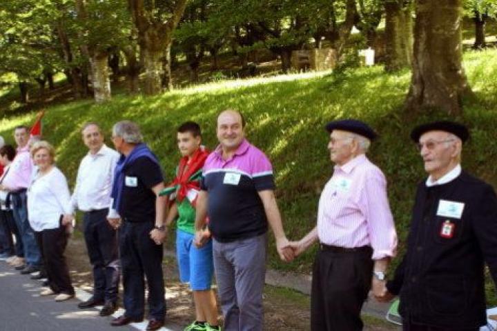 La cadena humana organizada para reivindicar el "derecho a decidir" de los vascos ha conseguido unir este domingo los 123 kilómetros que hay entre Durango, en Vizcaya, y Pamplona con unas 150.000 personas, según los organizadores.