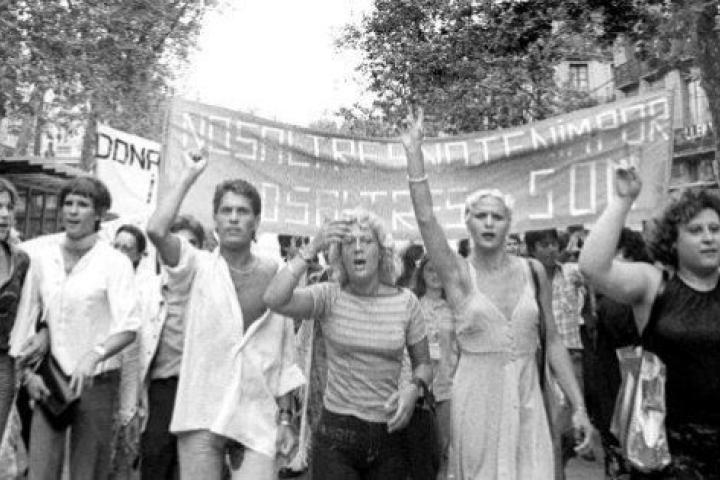 "En un momento aparecieron los grises dando palos y hubo cantidad de gente de la mani que salió corriendo a izquierda y derecha por allá por donde pudo. Hasta se refugiaron en una iglesia. Y quienes se enfrentaron a la policía de una manera muy firme fueron los transexuales, cuya presencia en la primera fila había sido puesta en cuestión por la imagen que podría dar a la marcha", asegura Empar.