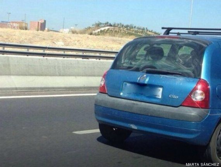 En otras imágenes se ve un Renault Clío azul, el mismo modelo de coche que tiene Iglesias, circulando por el carril central de una autovía.
