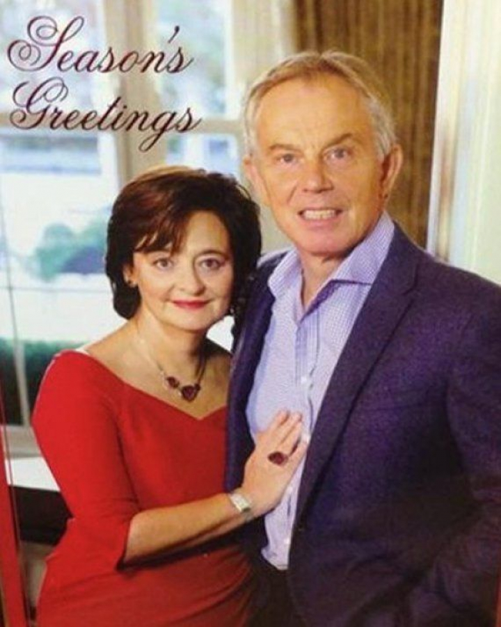 Tony Blair y su mujer Cherie Blair ya han mandado su felicitación de Navidad. El exprimer ministro británico ha compartido con los medios un curioso christmas en el que la pareja trata de sonreír ante las cámaras... y lo que le sale es esto.