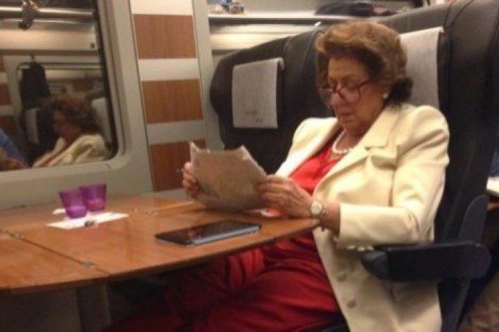 Rita Barberá vuelve a ser el centro de la polémica. Tras el calorety la burla desde el balcón en las Fallas, ahora el motivo es esta foto captada por un viajero de AVE y tuitero, @escanyat, que pilló a la alcaldesa de Valencia de vuelta de Madrid, con los zapatos quitados y con los pies encima del asiento que está frente a ella, una actitud poco cívica.