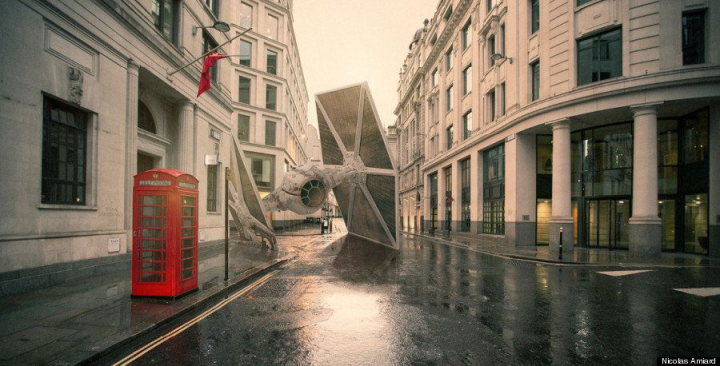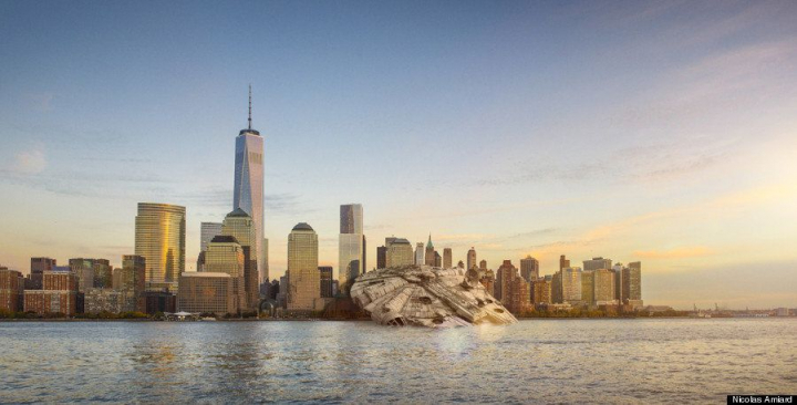Nicolas Amiard, director de arte en una agencia de publicidad en París, hizo estas fotos para su serie Star Wars, disponible en Behance. Las imágenes muestran las naves en Nueva York, Londres, Río de Janeiro y otros destinos turísticos alrededor del mundo. Gracias a sus increíbles habilidades de retoque, las fotos de Amiard parecen documentar colisiones reales.