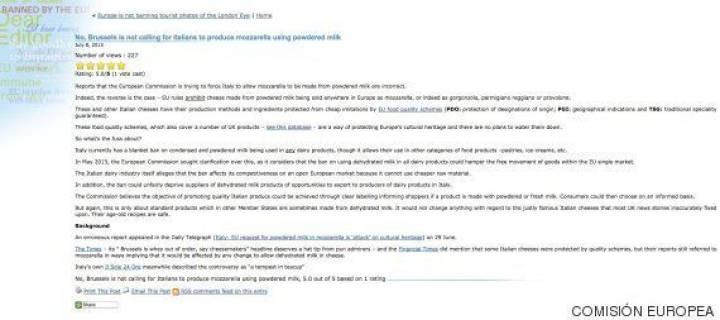 Además, la Comisión también elabora documentos para desmentir informaciones que considera falsas o erróneas, como este decálogo sobre "mitos" acerca del TTIP, el tratado de comercio con Estados Unidos:
