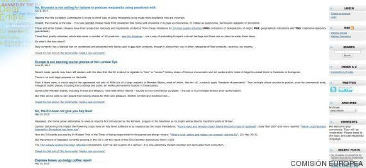 La Comisión Europea cuenta con una página similar desde octubre de 1992 en la que el organismo da su versión o rectifica noticias que considera incorrectas sobre la actividad de la Comisión publicadas en la prensa de todo el mundo. (Pincha aquí para verla en inglés)