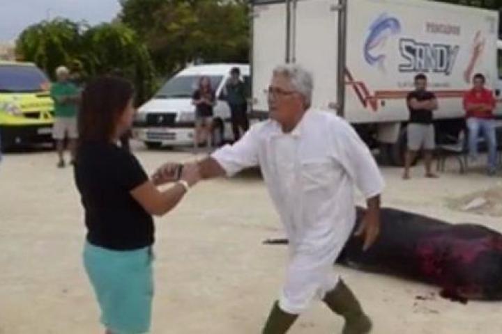 Agreden a una mujer que grababa a un toro muerto tras una corrida