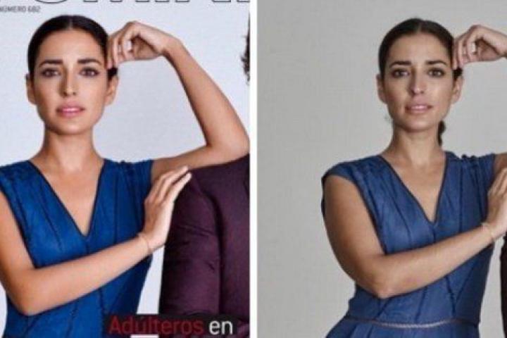 "Verte y no reconocerte, descubrir que tu imagen está en manos de personas que tienen un sentido de la belleza absolutamente irreal", dice Cuesta, que acompaña a la imagen retocada la foto real, que "fue sacada con mi móvil directamente del ordenador en la sesión de fotos". Este es el antes y el después.