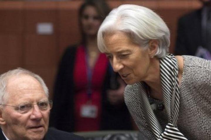 La directora del FMI, Christine Lagarde, conversa con el ministro alemán de Finanzas, Wolfgang Schäuble. En el contexto de la crisis griega, el FMI suele considerarse como 'poli bueno' y Alemania, como 'poli malo'.