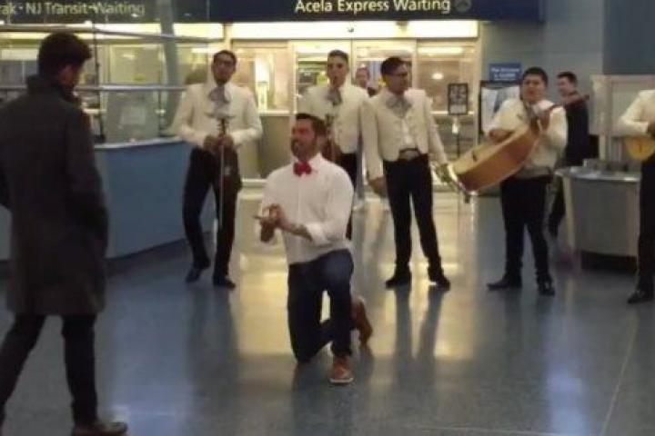 El modelo estadounidense Joey Grant decidió, tras más de un año de relación, pedirle matrimonio a su novio, el fotógrafo y estilista mexicano Julio Nuño. El escenario elegido fue la estación de Penn Station, en Nueva York, donde se conocieron. Y la indumentaria elegida fue un traje de mariachi, que vino acompañado de una banda de músicos que interpretaron la canción 'El milagro de tus ojos' —según informa El Universal —.