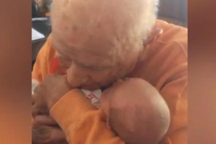El emotivo encuentro entre un hombre de 105 años y su pequeño bisnieto