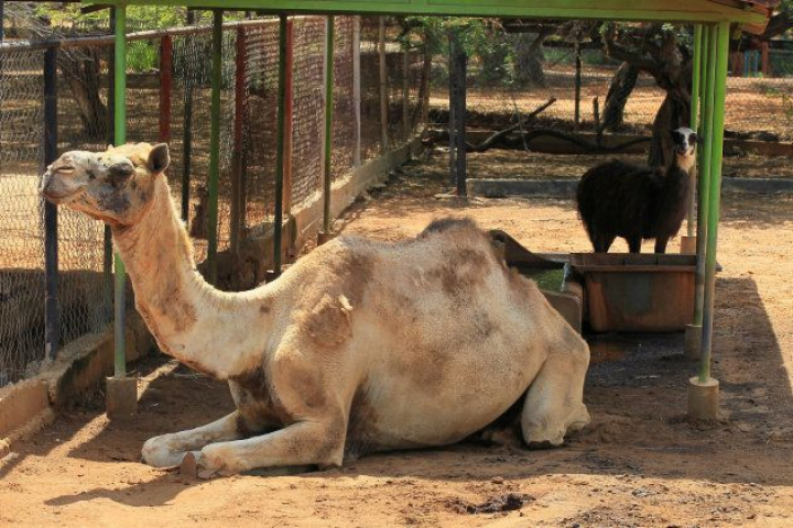 Un camello y una llama, en el zoo de Maracaibo.REUTERS