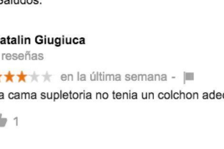 "La cama supletoria no tenía un colchón adecuado", escribió el supuesto cliente.