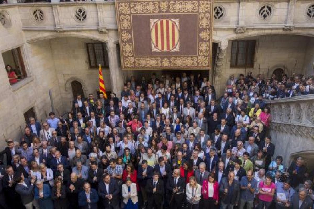 El presidente de la Generalitat y la alcaldesa de Barcelona, Ada Colau, reciben a los más de 700 alcaldes citados por la Fiscalía.