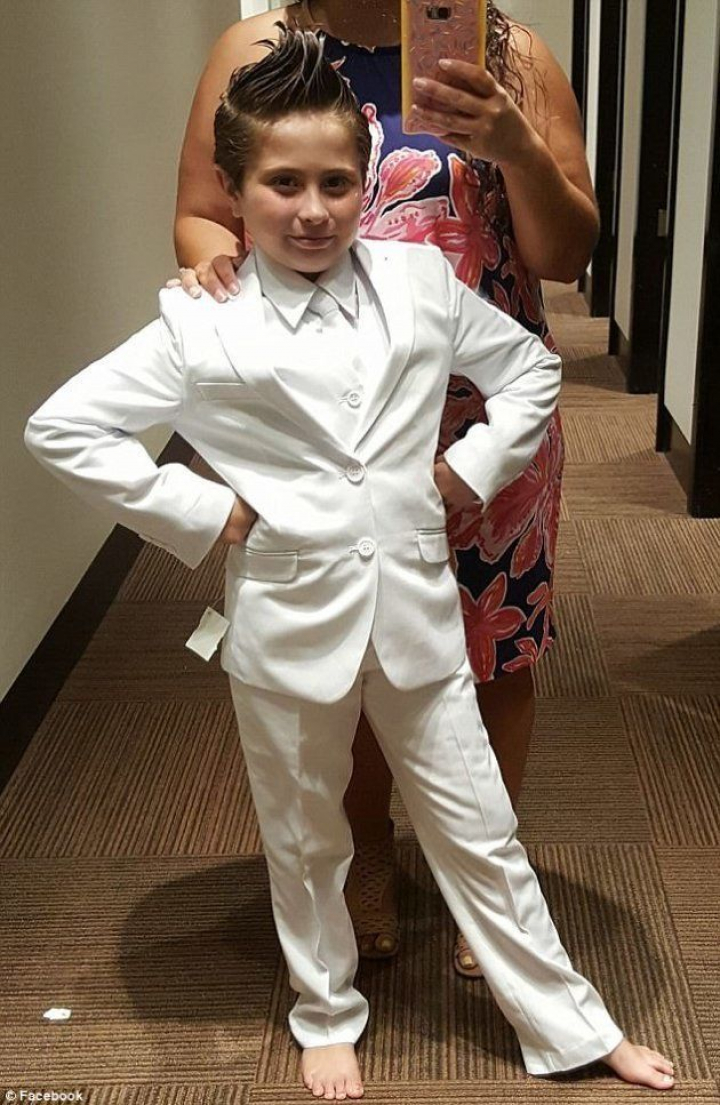 Según relató su madre, Chris, en Facebook, el pasado 10 de octubre, la pequeña acude a clases en una escuela católica y tenía que hacer la comunión ese domingo. "Ella ama los trajes y los usa a menudo. Como inicialmente no había un código de vestimenta para el evento, asumimos que podría usar un traje. Salimos todos y terminamos encontrando el atuendo perfecto en un fin de semana, uno que la hacía sentirse hermosa y segura", relata. Era agosto, con lo que tenían tiempo suficiente para hacerle algunos arreglos que adaptaran el conjunto al cuerpo de la niña.