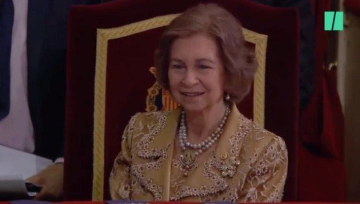 También la reina Sofia se quedó prendada de los cinco deportistas a los que miró con esta sonrisa, entre alucinada y divertida.
