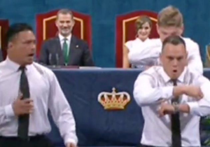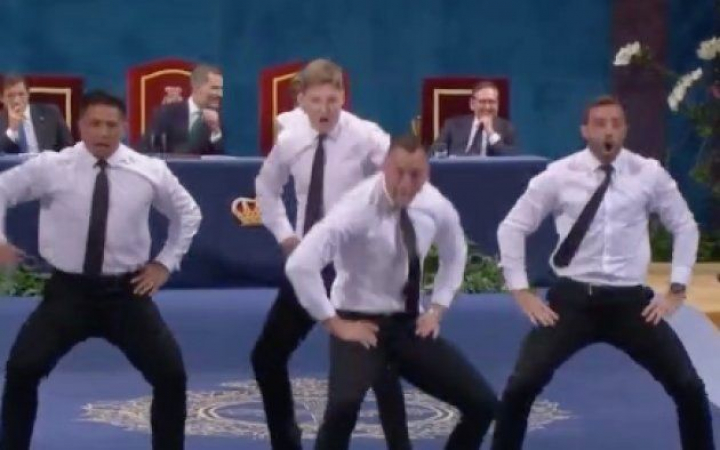 Después de saludar a los reyes Felipe VI y Letizia y de recoger el diploma acreditativo, los cinco se pusieron delante de la mesa presidencial, se quitaron las chaquetas de los trajes e hicieron lo que mejor saben hacer: la haka, una danza ancestral de guerra que bailan antes de empezar cada partido.