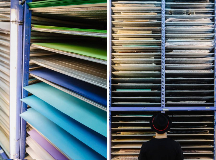 La apuesta por la creatividad, que definió los primeros años de vida de esta amable tienda, todavía se palpa en el ambiente. Philip se pierde entre los artículos de papelería que ofrece el acogedor espacio, y presta atención al eje fundamental de su actividad y punto central de su filosofía: el papel. Más de 2.500 referencias, desde los clásicos para bellas artes y edición hasta papeles especiales con infinidad de acabados y tratamientos, se recogen con cuidadoso respeto en su almacén. El orden cromático, que estructura y jerarquiza sus productos, también se perfila en líneas y formas que estimulan toda nuestra imaginación.