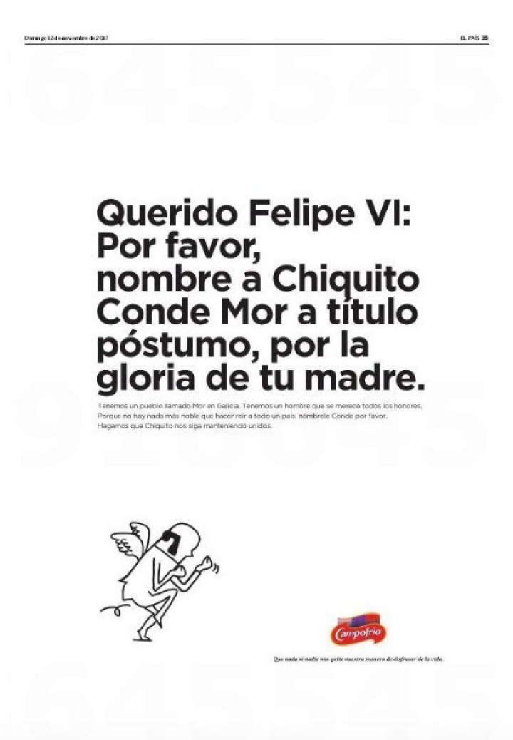Campofrío ya lanzó la idea este sábado, cuando compró toda una página del diario El País con el mismo mensaje:
