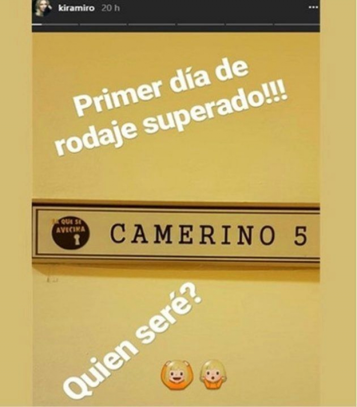 Kira Miró estará en la próxima temporada de La Que Se Avecina. Así lo ha confirmado la actriz en su cuenta personal de Instagram con una imagen en la que muestra uno de los camerinos de la serie acompañada de dos mensajes: "¡Primer día de rodaje superado!" y "¿Quién seré?".
