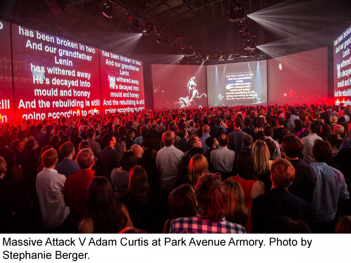 Hace algunos meses escribía de cómo la union hace la fuerza y cómo vivimos en una época de eclosión de los géneros híbridos. Como ya hicieran Yo La tengo con Adam Green en el proyecto llamado The Love song of R. Buckminster Fuller, Robert del Naja (Massive Attack) se une al radical documentalista británico Adam Curtis para crear una obra intensísima que, aunando música con cine, resume algunos de los acontecimientos históricos, culturales y politicos críticos más significativos de los ultimos cincuenta años. La premiere estadounidense tuvo lugar el 28 de septiembre en el fabuloso Park Avenue Armory (Nueva York), y termina este viernes 4 de octubre. El proyecto remarca la manipulación de los acontecimientos por parte de las élites políticas, pero deja ver aún cierta esperanza por un futuro mejor, que dependerá de nosotros: nos da ese poder y esa responsabilidad. Imposibilita la complacencia, obliga a la reacción.