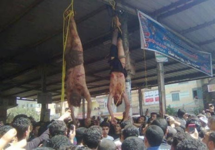 A mediados de marzo se publicó en la prensa egipcia la foto que se adjunta con este texto. En ella aparecen dos ladrones que habían sido pillados por los vecinos de una ciudad pequeña llamada Samanood, al norte de El Cairo, robando en un mercado. Los propios vecinos los torturaron, asesinaron y los colgaron de esa forma que aparece en la fotografía en el mismo mercado. No se trata del primer caso de esta naturaleza, ni del último, ocurrido en el país a lo largo de los últimos meses. En Egipto es difícil contar con estadísticas fiables o con cifras concretas, pero se pueden encontrar diariamente noticias sobre actos parecidos a este ocurridos en diferentes lugares, incluida la capital. Esto supone un nuevo grado de violencia colectiva para este país.