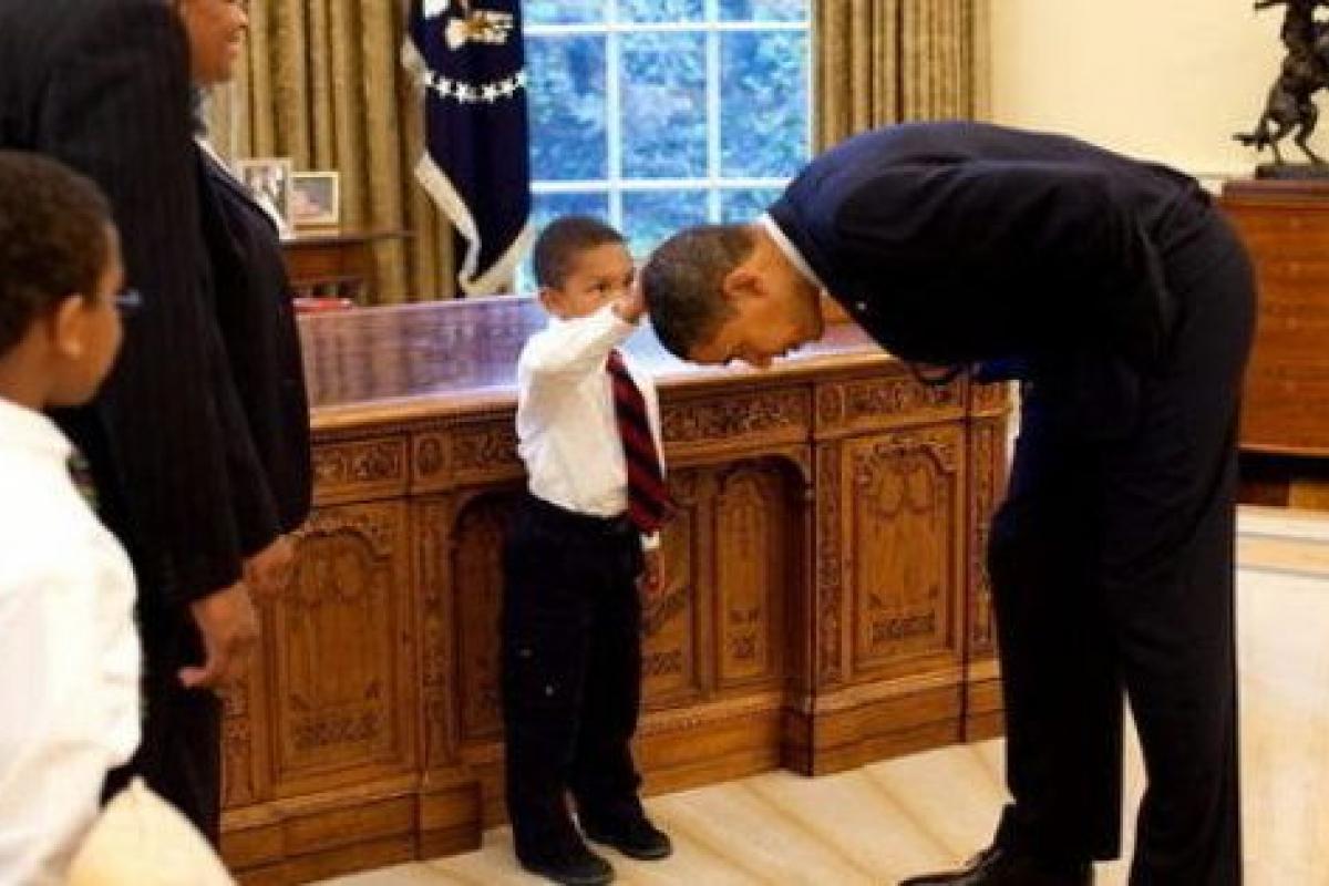 Foto: Obama deja que un niño le toque la cabeza. Foto: PETE SOUZA.