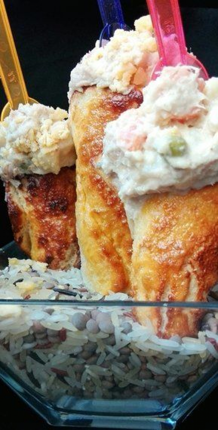 - Emplatado: rellena los cucuruchos con la ensaladilla, espolvorea por encima las yemas ralladas de huevo duro reservadas y sírvelos en un cuenco clavados en legumbres secas o arroz.