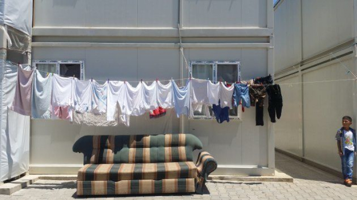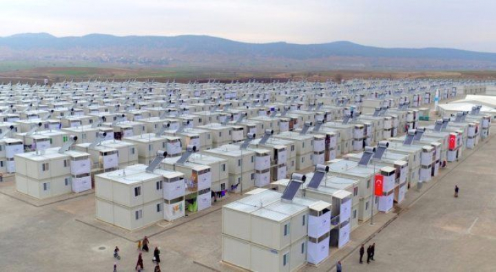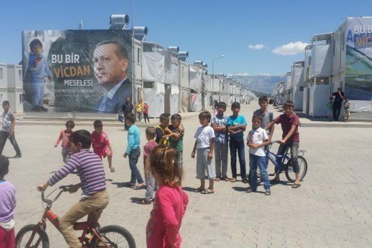 La ciudad de contenedores de Kahramanmaraş, el primer campamento que visité (Ankara prefiere llamarlos "centros de protección temporal", un término mucho más aséptico), acoge a casi 24.000 refugiados, en su mayoría sirios de Alepo. A su entrada, una enorme pancarta luce a un paternal presidente Erdoğan dando la bienvenida al visitante bajo el lema: "Es una cuestión de conciencia". Este campo está formado por 5.000 contenedores apilados en bloques de dos. Cada uno de los alojamientos alberga hasta cinco miembros de una misma familia. Y aunque duermen en colchones de espuma en el suelo, cuentan con electricidad generada por energía solar, cocina, agua corriente, televisión, lavadora y ventiladores.