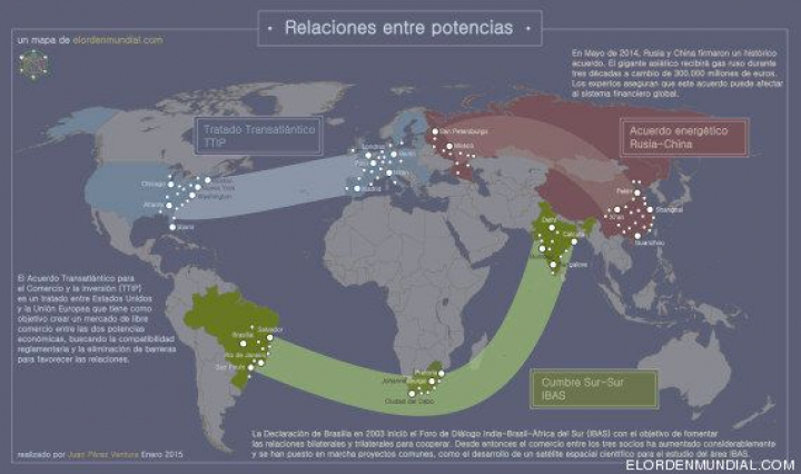 Sin necesidad de contraponer a esta opción una alternativa apocalíptica, a medio plazo lo más realista es imaginar la conformación de grandes bloques regionales, muy integrados internamente, aun rivalizando entre sí por los recursos energéticos. De hecho, esta es la clave desde la que mejor se entiende la construcción de unos Estados Unidos de Europa, en la que estamos inmersos. Pero también la existencia de la Liga Árabe, de la Asociación del sudeste asiático (Asean) o del Nafta, en el Norte de América. Obviamente, la reconfiguración mundial está por definir, pero ya se esbozan incluso coaliciones inter-regionales: el libre comercio avanza hacia Europa, existe un foro Sur-Sur desde hace años y en mayo de 2014 Rusia y China firmaron un acuerdo energético en el marco de la Conferencia sobre Interacción y Desarrollo de la Confianza en Asia.