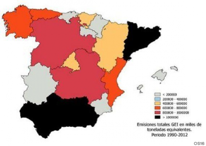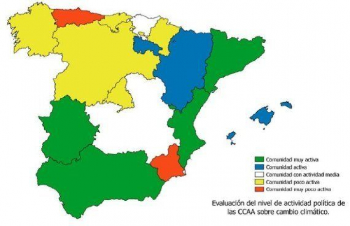 A modo de ejemplo, la Figura 2 refleja el total de emisiones del periodo 1990-2012, con Cataluña y Andalucía en los primeros lugares (en color negro). La Figura 3 recoge (en color verde) las comunidades autónomas políticamente más activas en la adaptación al cambio climático.