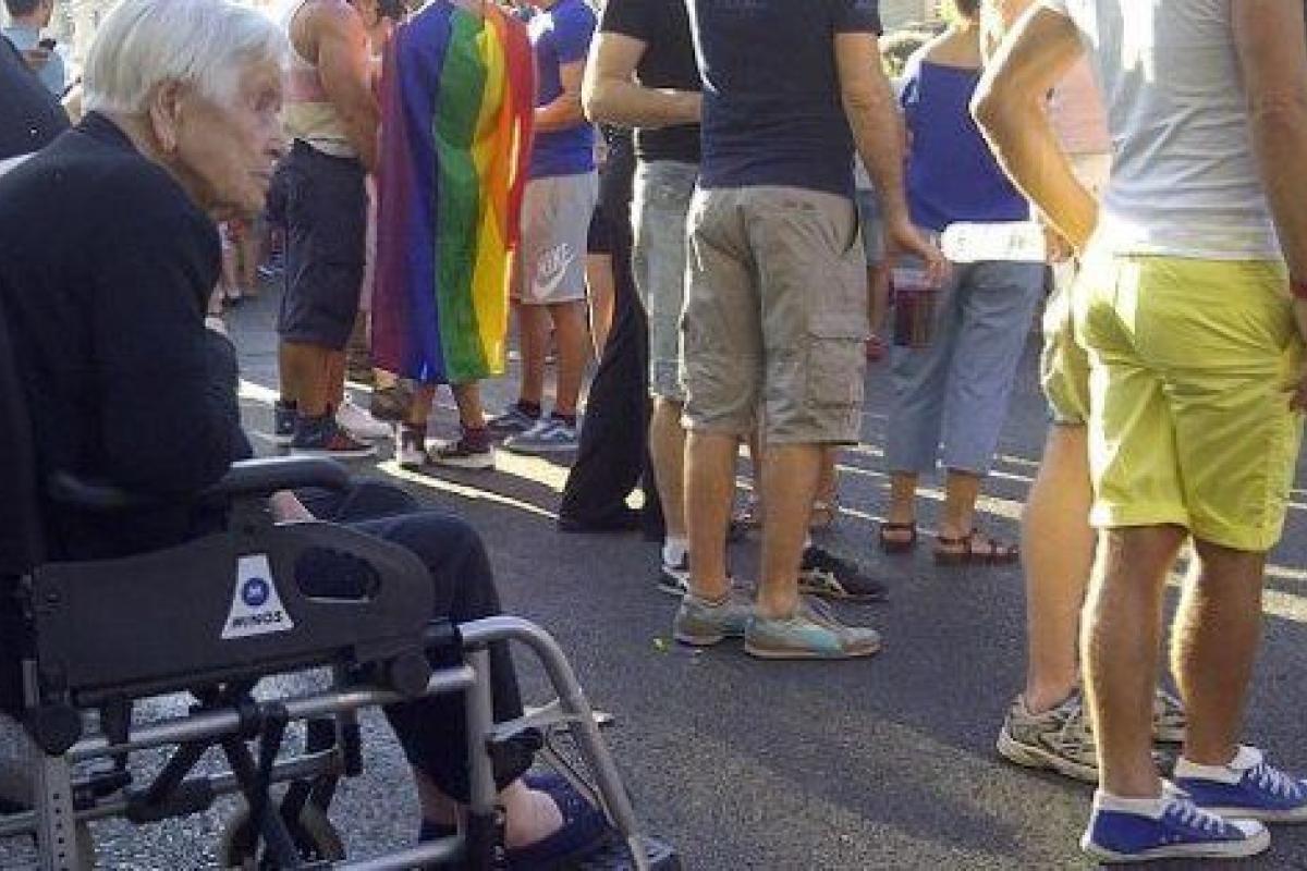 Tampoco ha salido nunca en ninguna foto del Orgullo Ángela, con sus ochenta años, aunque asegura que ha venido desde la primera vez que se convocó. Es heterosexual militante y arrastra a su marido cada junio a la calle de Alcalá: "Vengo porque me gusta mucho este ambiente", aclara. Mari Carmen y Toñi, del Barrio de Salamanca, y la cincuentena, prefirirían no salir en cámara, pero tampoco se lo pierden, a pesar de que no suelen acudir a otras manifestaciones.