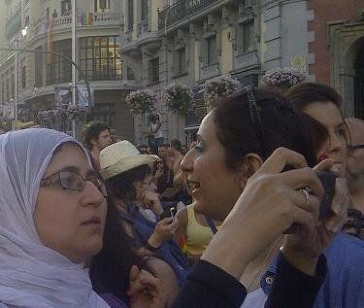 Al entrar a la Gran Vía la calle se estrecha y la música de las carrozas se escucha más cerca: ¿quién dijo que no se puede reivindicar bailando? Hay quien acude año tras año y aún se asombra: la visibilidad ha sido y es (fuera de Madrid especialmente) un asunto pendiente y, por unos días, hasta el bar Manolo cuelga la bandera arcoiris y acoge a tanas parejas heteros como homosexuales. Se salta y se baila aún con más ganas cuando al llegar a Plaza de España la pantalla refleja la portada de la edición digital de El País adelanta que el Tribunal Constitucional respaldará el matrimonio igualitario. Nadie del Gobierno pudo sonrojarse pues fue la primera vez desde 2003 que no había representación del Ejecutivo.