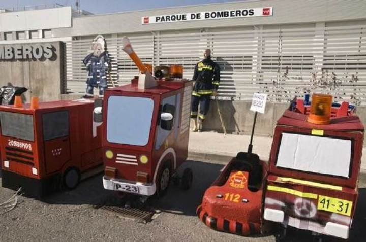 Aquel día en el parque "fantasma" dejamos unos vehículos de cartón piedra y unos bomberos de papel. Esta es la dotación que cuida de Valdemoro a día de hoy.