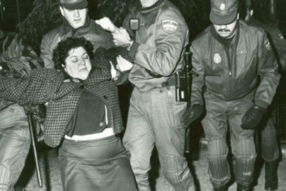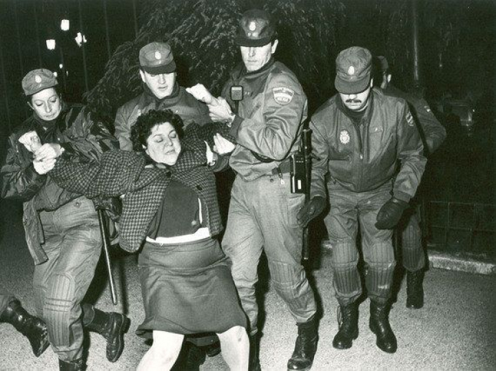 Sara, de las Madres Unidas contra la droga, en una manifestación contra la ley Corcuera. Foto: Antonio G. Vázquez.