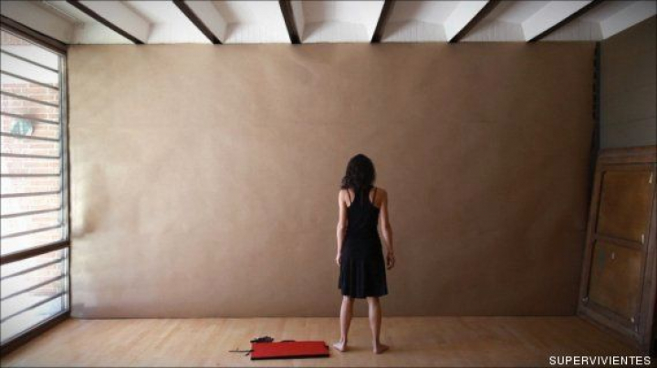 Milena, de cara a la pared y pintando. Fotograma del documental.