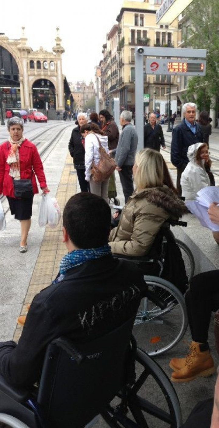 Era la primera vez en mi vida que yo no era de los que miramos sin mirar, de los que comentamos por detrás cuando el de la silla de ruedas ya ha pasado. Quizá por eso me resultaba fácil ver esas no-miradas, sentir esa pena que mi rodar por el vagón generaba. Demasiada tensión para un espacio tan pequeño como el vagón de un tranvía, pensé. Tan novato era yo, que se me olvidó frenar la silla y, al arrancar el tren, mi silla rodó con él unos centímetros; los justos para que una madre corriera a ayudarme a frenar la silla, con esa sensación de "voy a hacer lo poco que pueda para mejorar tu triste vida". Cuando bajamos los de las sillas, sentí que los demás del vagón respiraban aliviados mientras el tranvía se iba dejándonos en la calle de la muralla de Zaragoza, junto a la Plaza del Pilar.