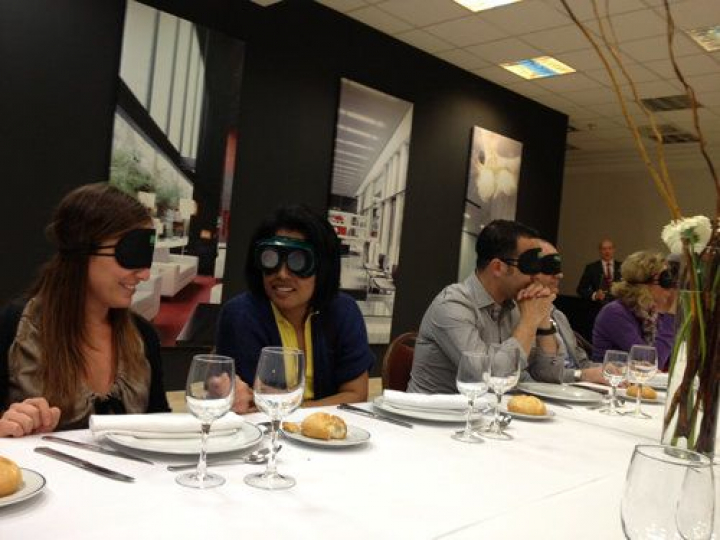 Por si fueran pocas las emociones de la silla, una noche nos invitaron a una cena a ciegas, en sentido literal. Nos pusieron antifaces y cenamos como lo haría un ciego. "A las 12 tienes el jamón, a las seis el queso y a las dos tu copa de vino", nos decía el camarero. Y tú ibas palpando como podías hasta que aquello llegaba a tu mano y a tu boca.