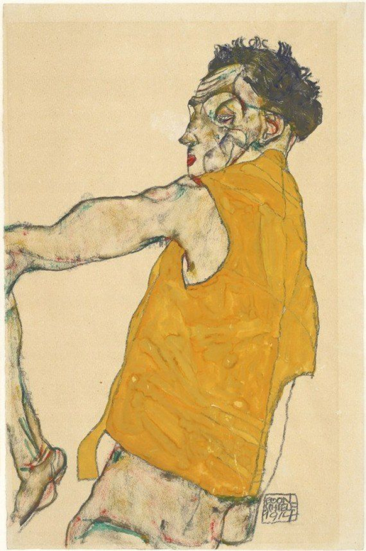 Egon Schiele, Autorretrato con chaleco amarillo (1914). Albertina, Viena, inv. 31157. Fuente: Guggenheim Bilbao.