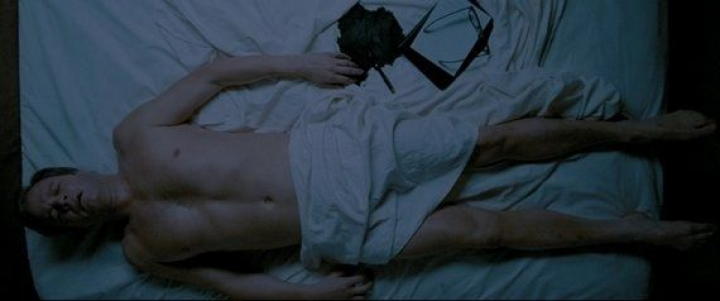 Lejos de la imagen clásica de masculinidad ligada a la iniciativa y la energía de la verticalidad, tres hombres en la cama, pasivos, esperando algo. Arriba, la película A Single Man (Tom Ford, 2009), © The Weinstein Company Inc. En medio, la fotografía de Aaron HobsonLunch (de la serie Dark, 2007-2011), © cortesía del artista. Abajo, un fotograma del film Shame (Steve McQueen, 2011), © Fox.