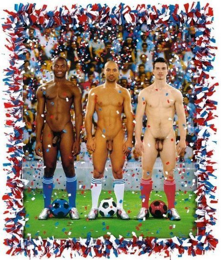 La pregunta es: ¿estamos dispuestos a hacerlo en serio? Si en las pantallas y el papel cuché se repiten algunos de los estereotipos de la feminidad más chabacanos trasladados a la masculinidad, es de esperar que los museos aporten otras perspectivas. Recordemos los dos carteles para las exposiciones del Leopold y el d'Orsay. En el primer caso tres gloriosos desnudos frontales -cada uno de un color de piel, como los reyes magos, y con calcetines alusivos a la bandera francesa- y en el segundo un trasero elevado a la categoría de epifanía mitológica. En una lectura inicial podríamos convenir en que algo se mueve, sí, ya que proponen visibilidades alternativas: por un lado, al fin los penes y los testículos se liberan de las hojas de higuera; por otro, lo anal deja de ser un tabú de la masculinidad; por último, la elección en ambos casos de obras Pierre et Gilles, adalides de un cierto erotismo gay, parecen anunciar discursos que se escapan de la hegemonía heterosexual. Sin embargo, todo resulta ser bastante menos atrevido: el cartel de Viena fue retirado por escandaloso, el de París muestra al dios olímpico de espaldas sólo para evitar los problemas de su predecesor, y en ninguna de las dos exposiciones se trabaja la representación del deseo homosexual en profundidad. En resumen, que no han habido más pelotas que las de los futbolistas: nueve en total y, al parecer, sólo tres realmente tolerables.