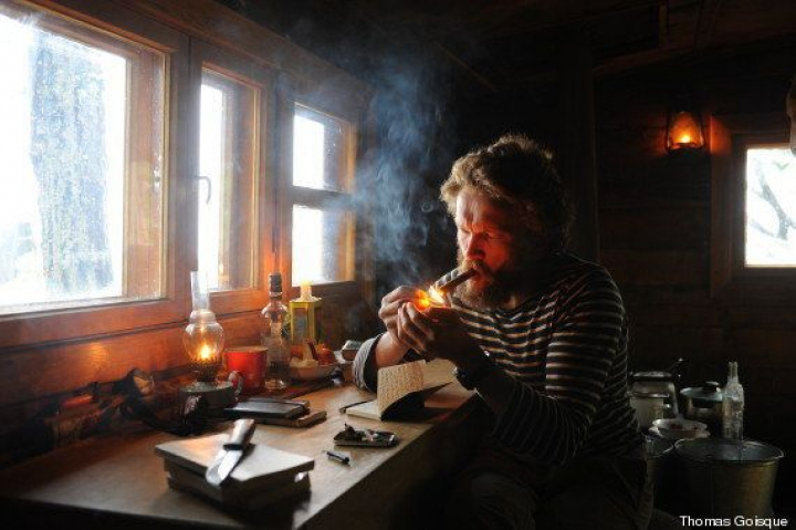 Llevé libros, puros y vodka. El resto -el espacio, el silencio y la soledad- ya estaba allí. En ese desierto me inventé una vida sobria y bella, viví una existencia reducida a gestos simples, miré los días pasar, frente al lago y al bosque. Corté leña, pesqué la cena, leí mucho, subí a las montañas y bebí vodka, mirando por la ventana. La cabaña era un puesto de observación ideal para captar los estremecimientos de la naturaleza.