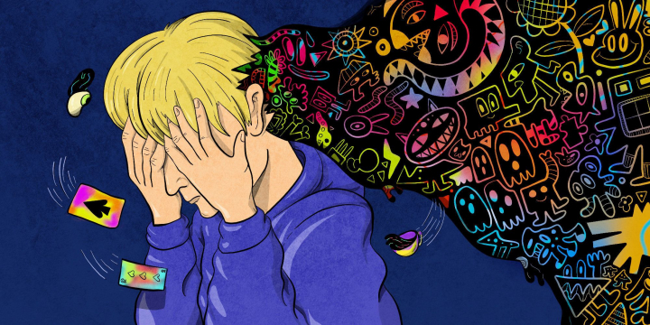 Pero, ¿cómo le dices a un médico extremadamente inteligente y reputado que has estado viendo enormes tostadas voladoras de queso fundido y barajas rojas, negras y blancas, o un payaso de tres metros y un Señor Patata cantando a la tirolesa mientras sobrevuela la habitación en avión?