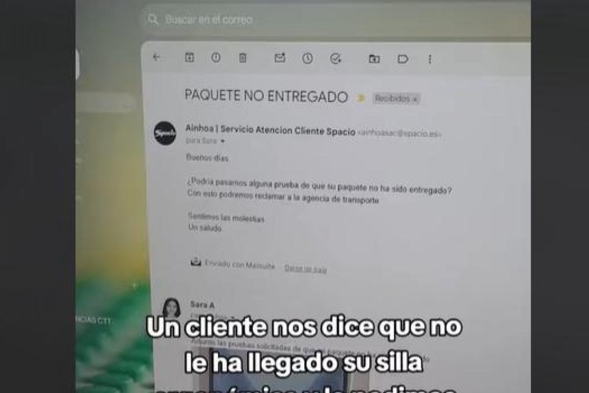 La empresa Spacio, especialistas en ergonomía, anunció en sus redes sociales (@spaciova) que una clienta reportó no haber recibido la entrega de una silla en su domicilio. Le solicitaron que enviara pruebas para poder presentar una reclamación al servicio de transporte.