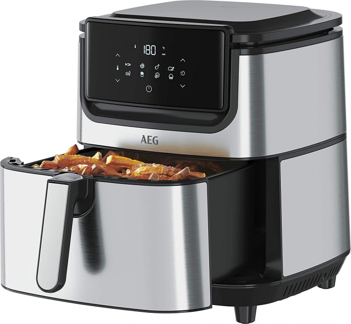 AEG tiene en su catálogo esta freidora sin aceite con un gran depósito con capacidad para hasta 5,4 litros. Es de acero inoxidable y tanto el cestillo como el resto de piezas pueden lavarse en el lavavajillas. Cuenta con una pantalla digital LED donde seleccionar cada uno de los ocho programas disponibles. Puedes comprarlo aquí por 149,99 euros (antes 229).